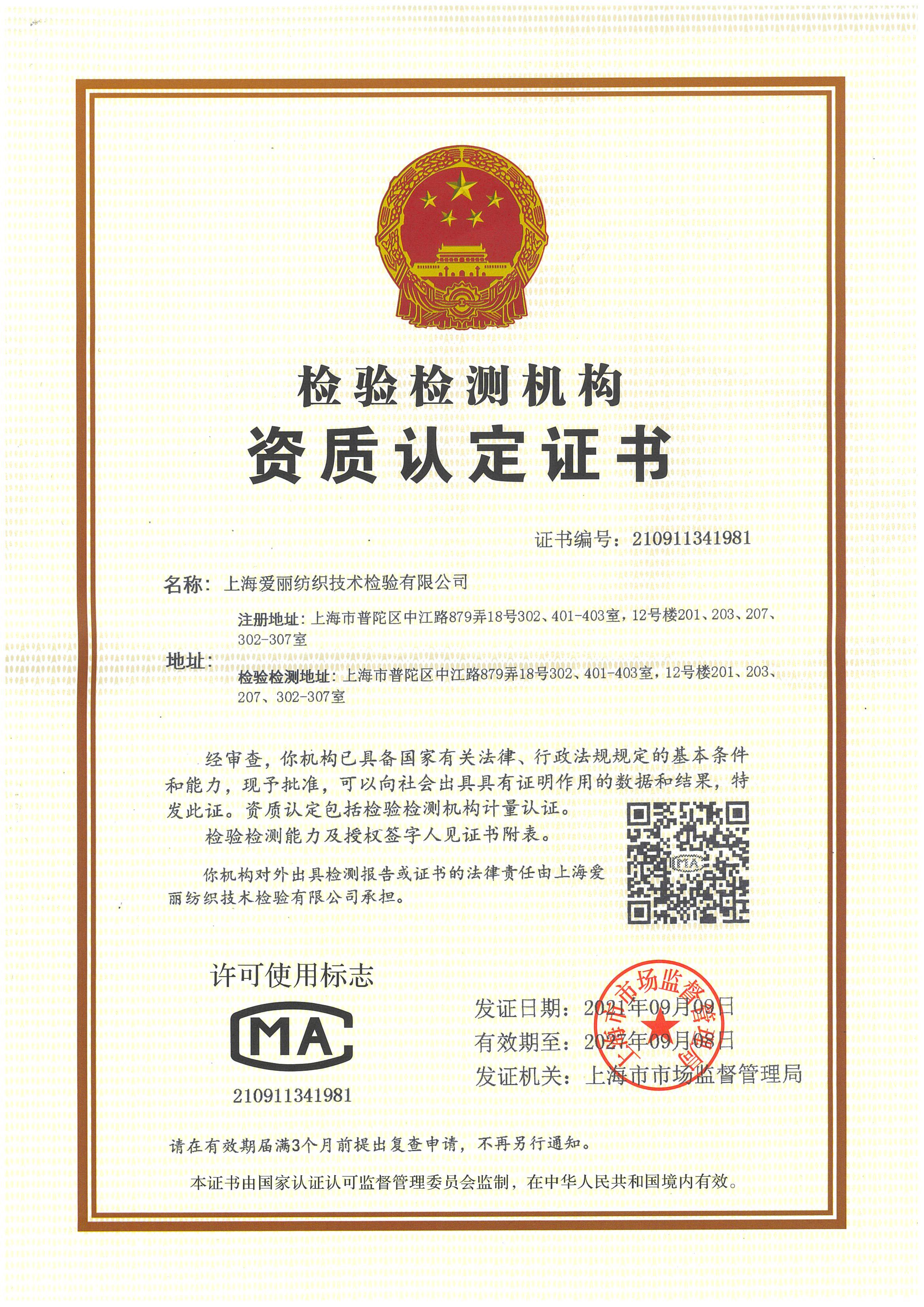 資質(zhì)認(rèn)定 計(jì)量認(rèn)證證書(shū) (證書(shū)編號(hào):210911341981)