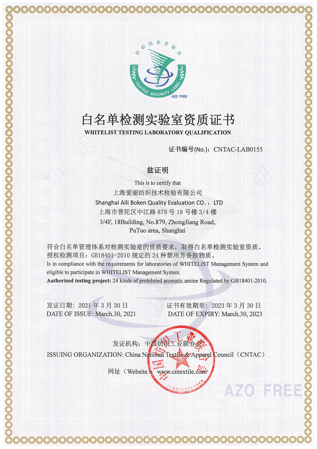 白名單證書(shū) (證書(shū)編號(hào)(NO.):CNTAC-LAB0155)
